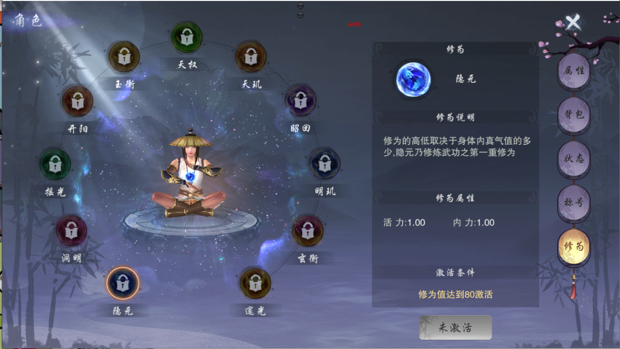 2.开启修为需修为值,目前修为值获得渠道仅为学习武功以及将武功修炼至满级时增加。