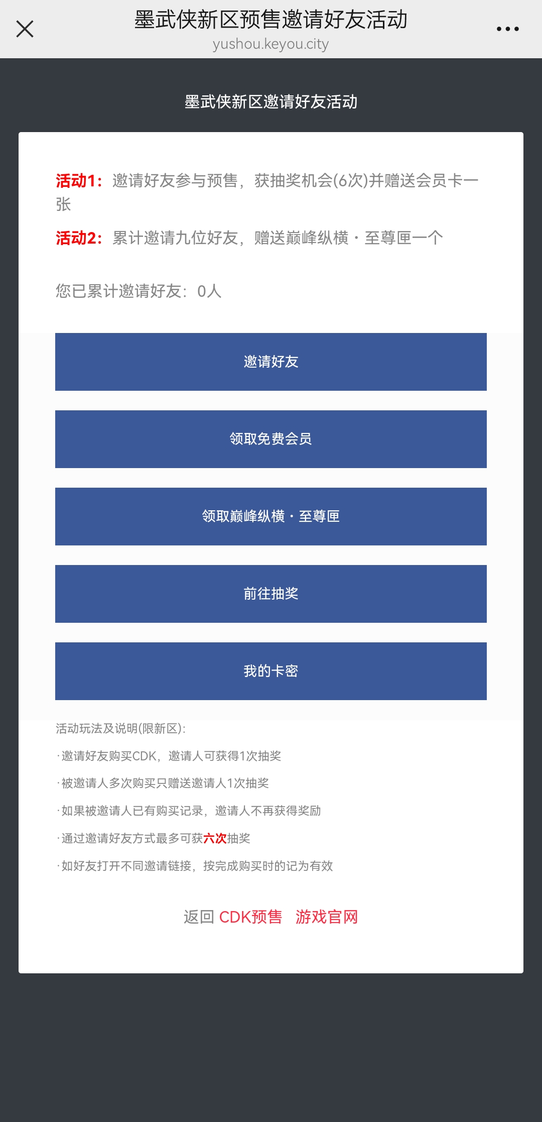 累计邀请六位好友,免费赠送新区超级会员卡一张